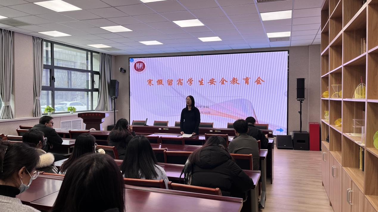 为做好寒假留宿员工的管理、服务工作,强化留宿员工安全意识,2024年1月10日,365英国上市公司召开寒假留宿员工安全教育会,公司党委副书记彭永刚、学工办主任王建君、辅导员上官萌萌出席,全体假期留宿员工参加会议。