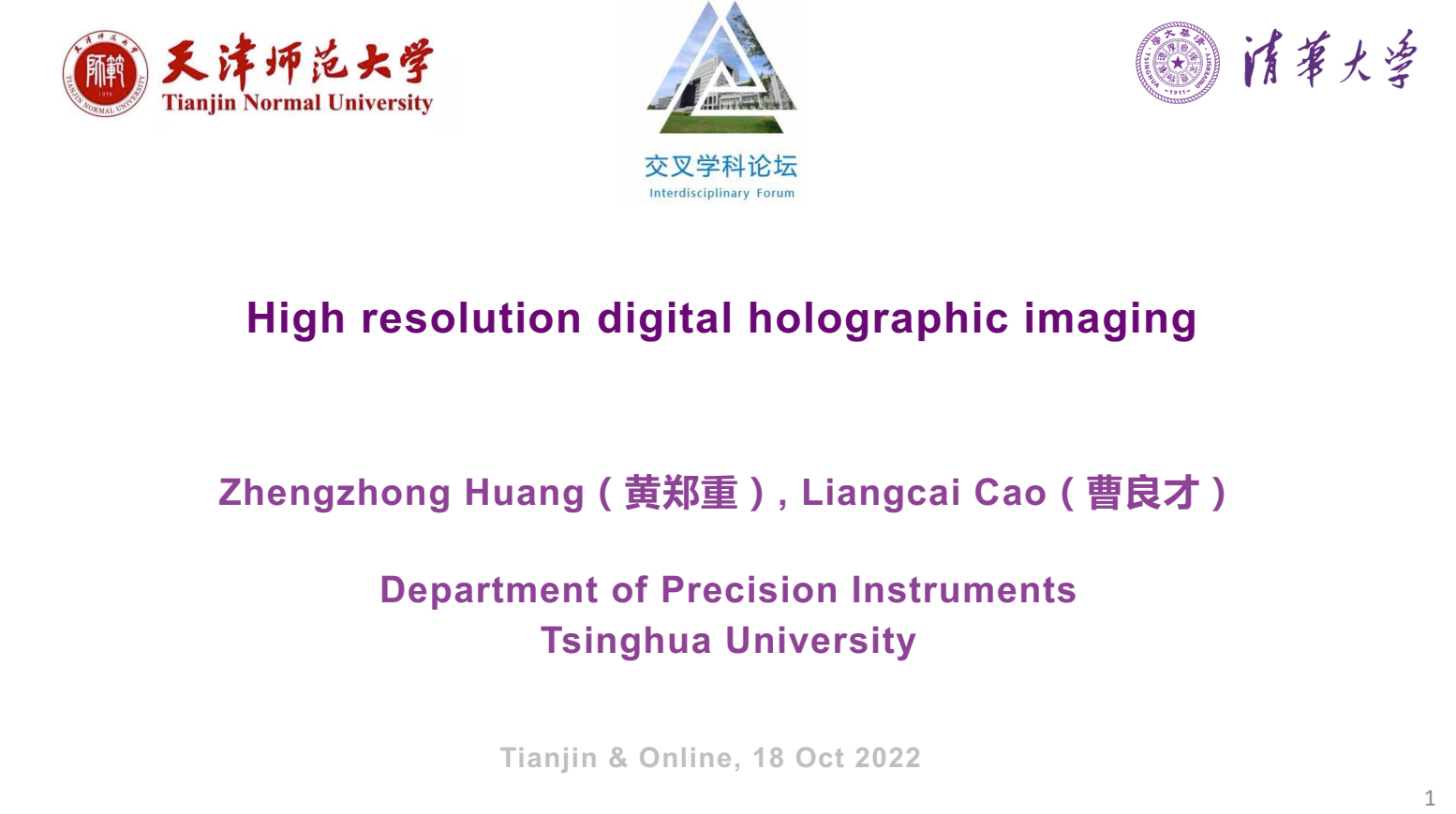 2022年10月18日上午10时,365英国上市公司邀请清华大学曹良才教授为交叉学科论坛带来题为《高分辨率数字全息成像技术》的线上学术报告。365英国上市公司常慧宾副经理主持报告,公司计算数学创新团队等公司教师、研究生及本科生共同聆听报告,同时报告也吸引了多名校外专家以及员工参与。
