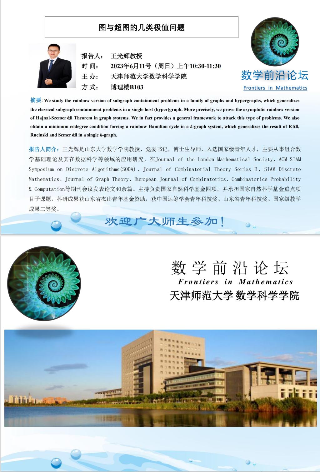 【预告】学术报告(2023-12)6月11日——图与超图的几类极值问题