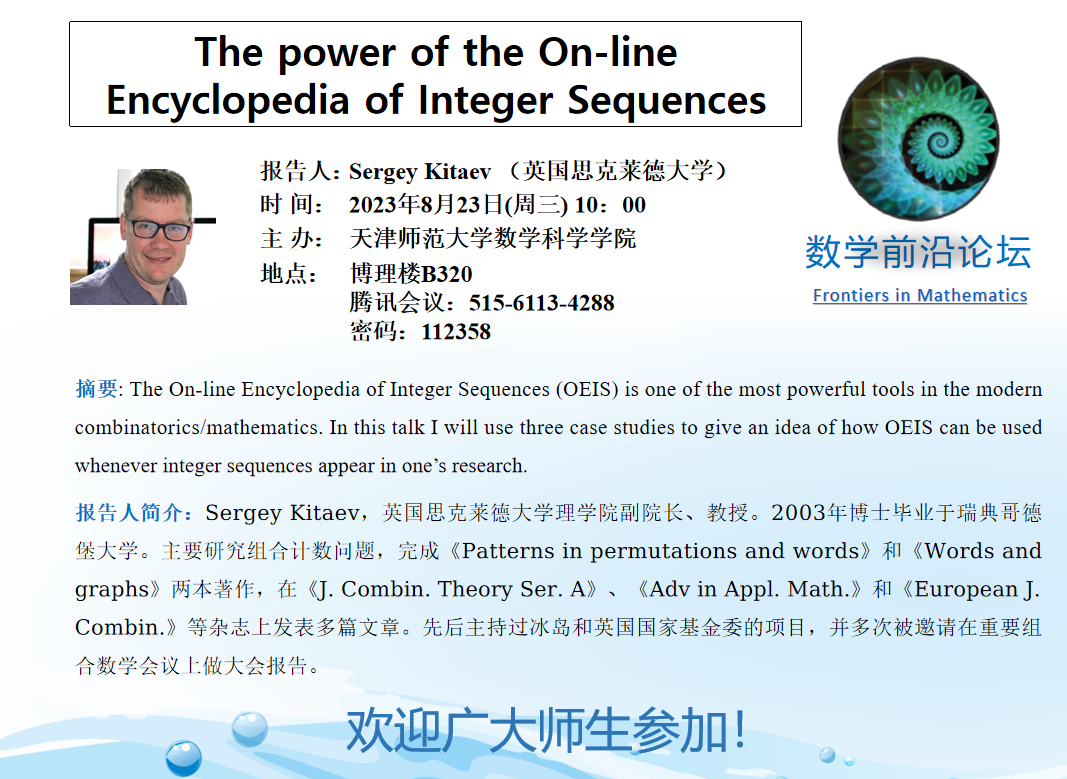 【预告】学术报告(2023-27)8月23日—The power of the On-lie Encyclopedia of Integer Sequences