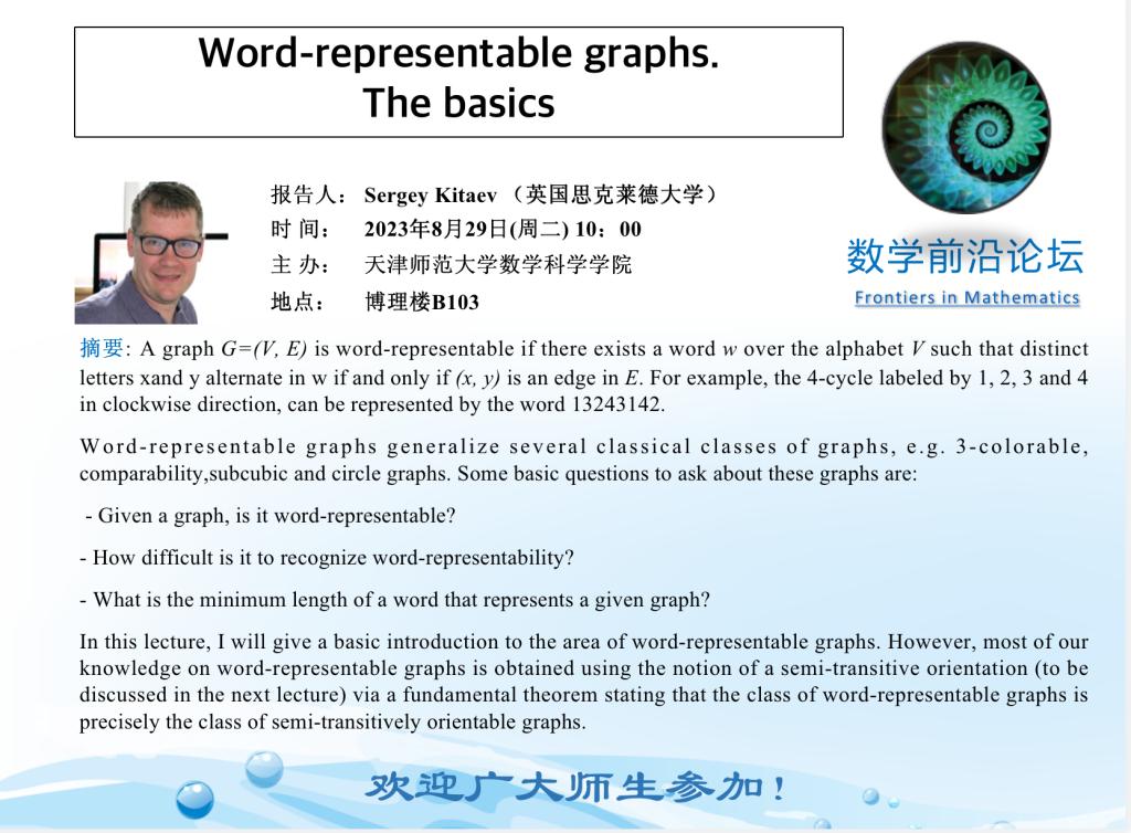 【预告】学术报告(2023-29)8月29日—Word-representable graphs The basics
