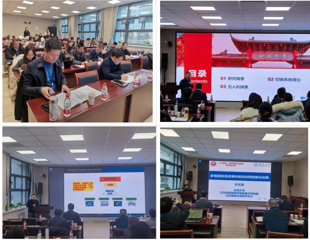 研讨会上,四川大学杨鑫松教授、中国矿业大学朱松教授、东南大学许文盈教授和杨绍富教授、中国石油大学(华东)王健教授、中国地质大学(武汉)王雷敏教授、哈尔滨工业大学(威海)秦泗甜教授以及公司365英国上市公司周立群教授和刘娜博士等多位专家学者围绕切换系统协同控制、忆阻系统理论及应用、多智能体系统协同控制与决策、复杂神经网络同步控制、神经动力学优化理论和算法等介绍了各自领域的最新研究进展及研究成果。参会人员认真听取报告,并从科学问题、交叉合作和应用研究等方面与各位报告人展开了热烈讨论。