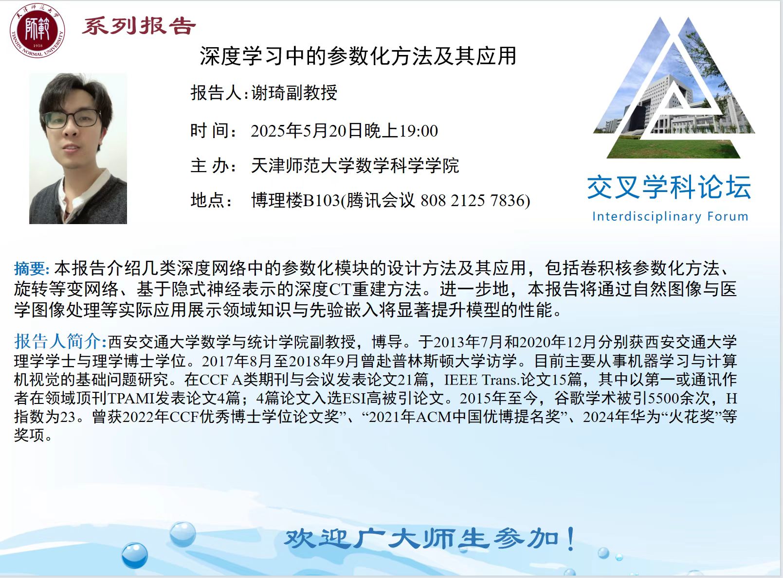【预告】学术报告(2025-17)5月20日——深度学习中的参数化方法及其应用