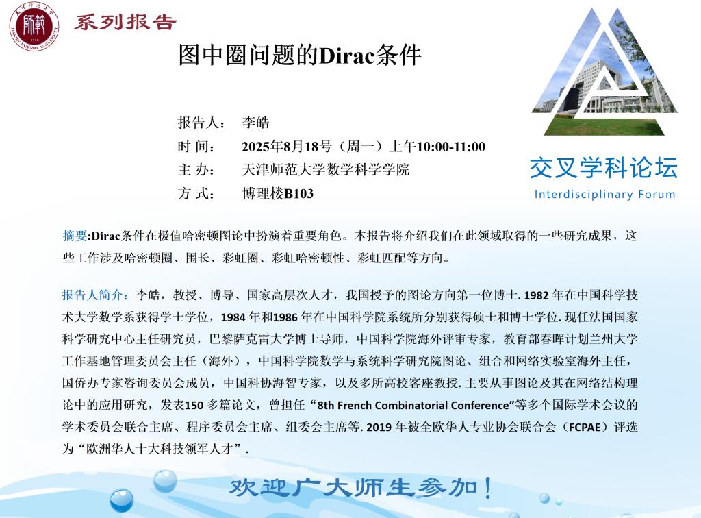 【预告】学术报告(2025-30)8月18日--图中圈问题的Dirac条件