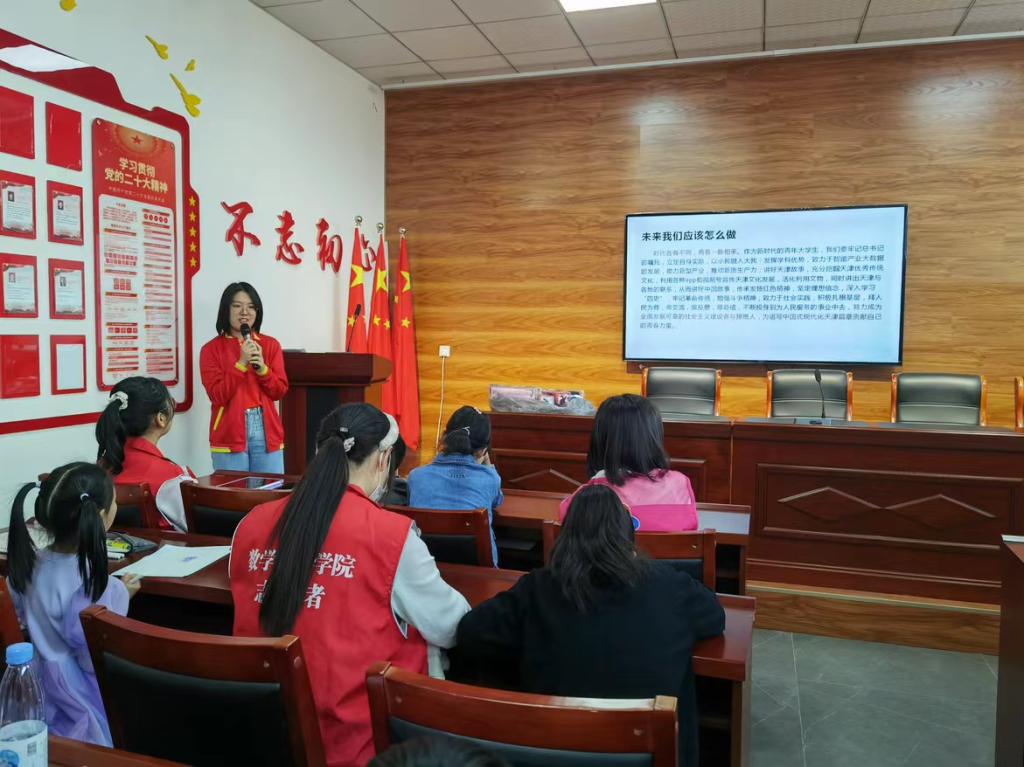在活动中,天津市“青马”班学员、公司2020级数学与应用数学专业本科生李雅睿结合自身实际,以“牢记嘱托、实干奋进、善作善成,奋力谱写中国式现代化天津篇章”为主题,从坚定理想信念、勇于担当责任、牢守为民初心三个方面与潘楼村居民分享了自己的体会。